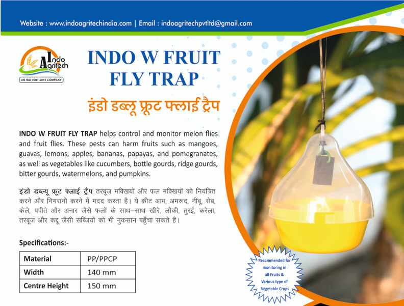 Fruit flies cause significant crop losses across India, especially in mango, guava, banana, citrus, and vegetable cultivation. INDO AGRITECH PRIVATE LIMITED introduces INDO W Fruit Fly Trap, an advanced and eco-friendly solution designed to help Indian farmers effectively manage fruit fly infestations while protecting crop quality and yield.