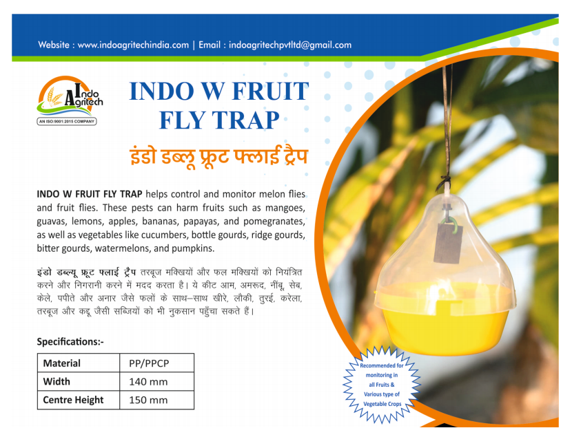 Protect your crops, reduce losses, and improve profitability with INDO W Fruit Fly Trap – the smart choice for modern Indian agriculture.